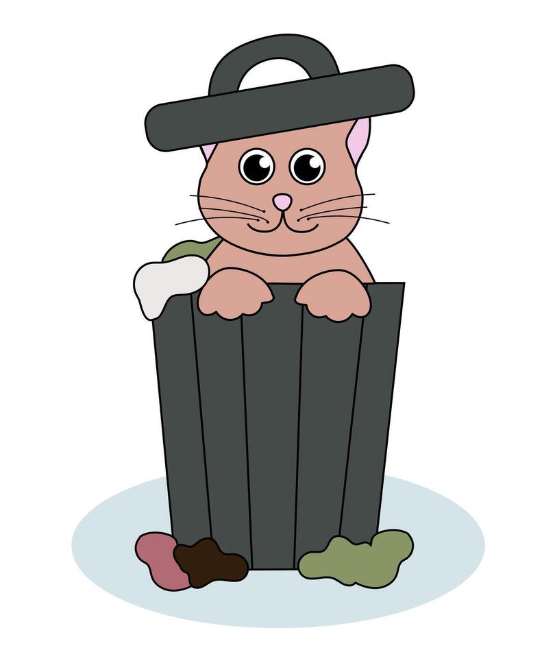 Problem with cat behavior. Kitten digs in the garbage. Cute flat illustration. Pro Vector