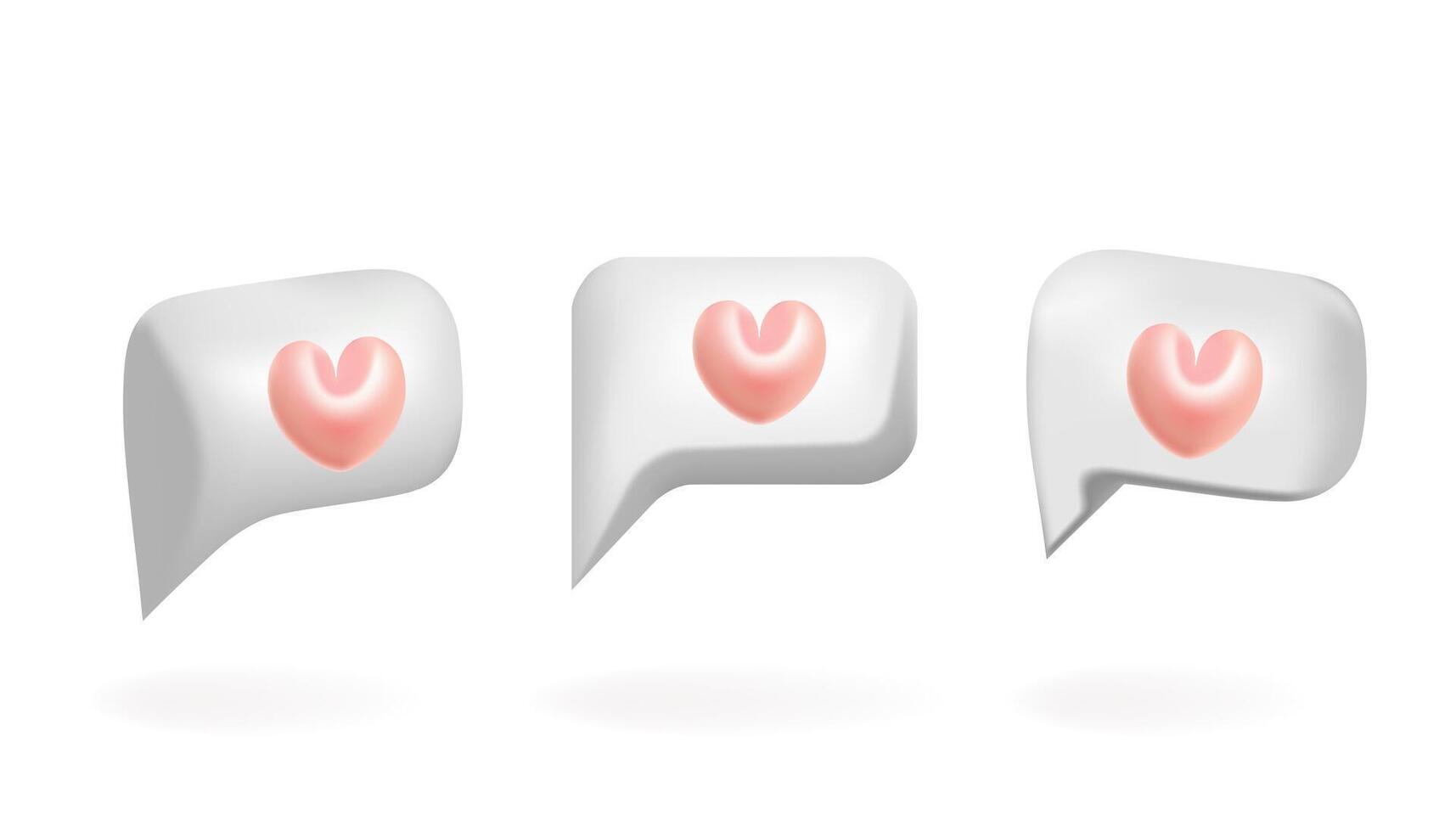 Rectangle 3d bubble speech set with pink heart illustration design. Blank messenger without text, online chat, web banner, love message. Pro Vector