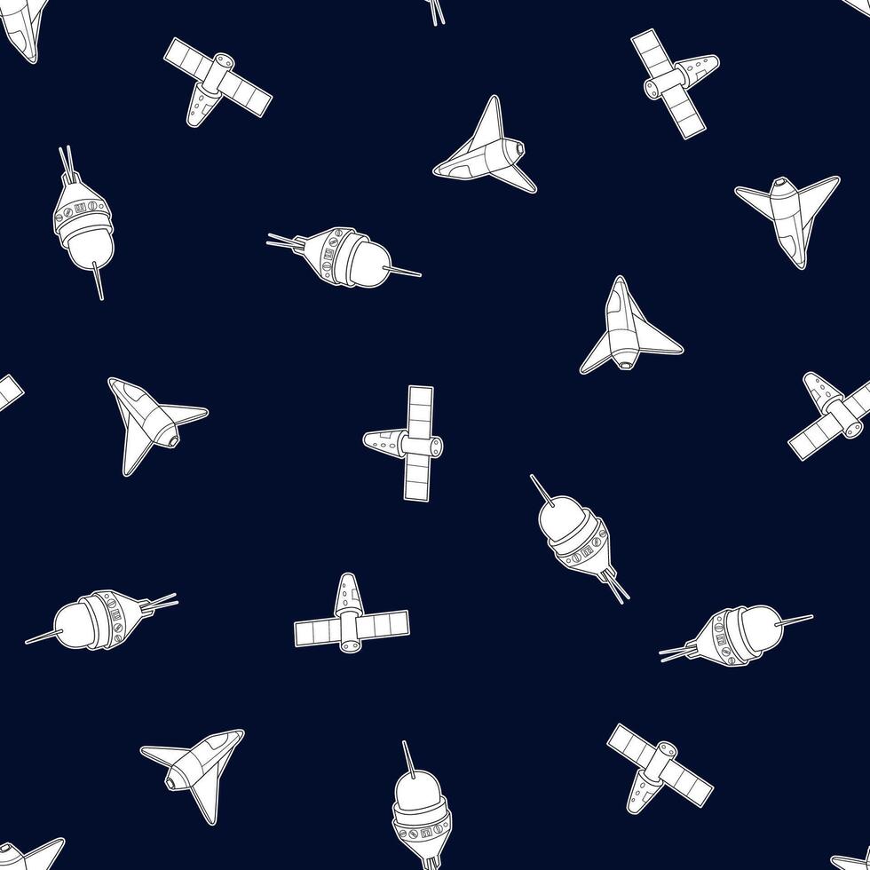 Rocket, shuttle and spaceship. Seamless pattern background. Pro Vector