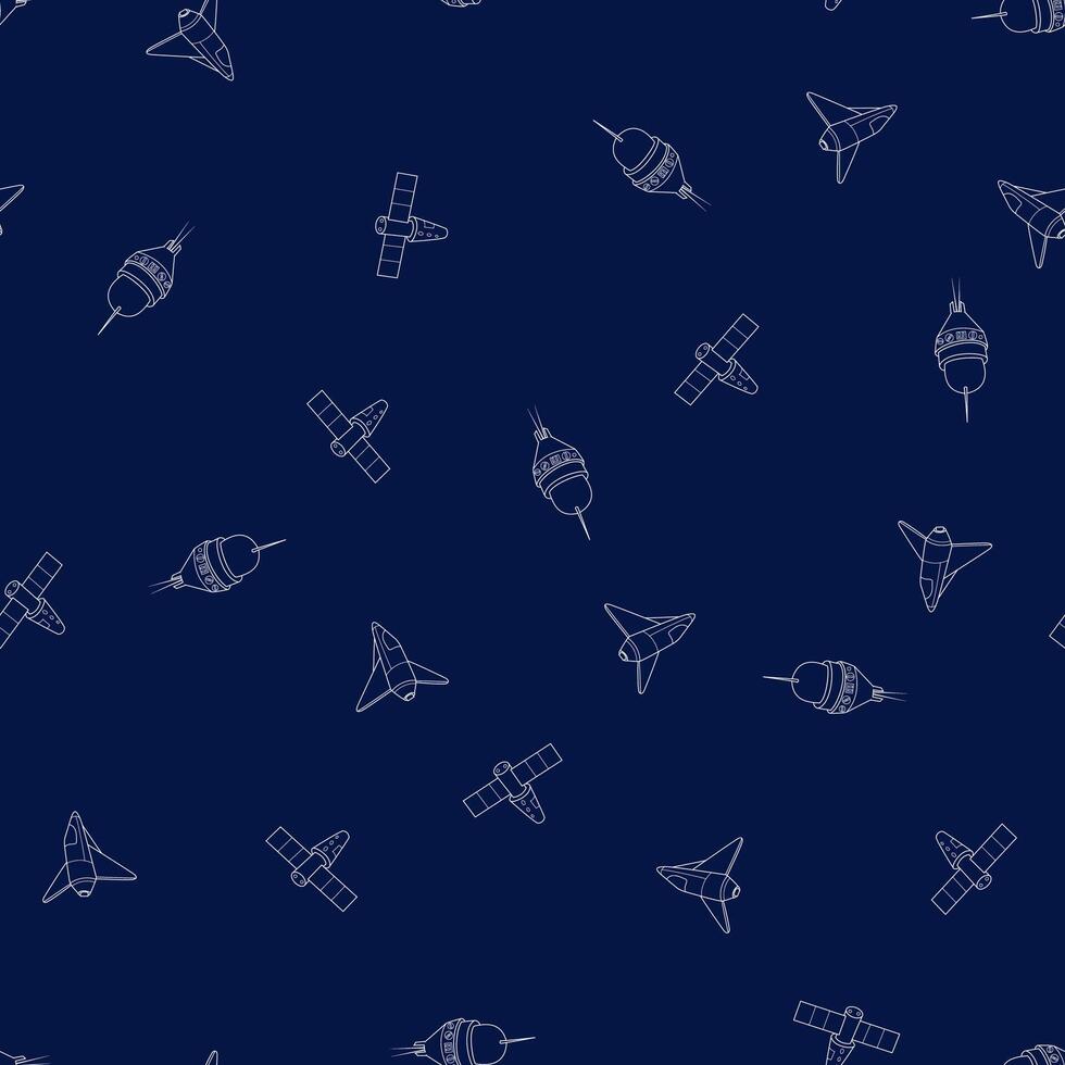 Rocket, shuttle and spaceship. Galaxy seamless pattern background. Pro Vector