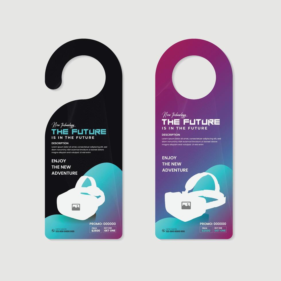 Virtual reality game workshop door hanger design template two variations design Pro Vector