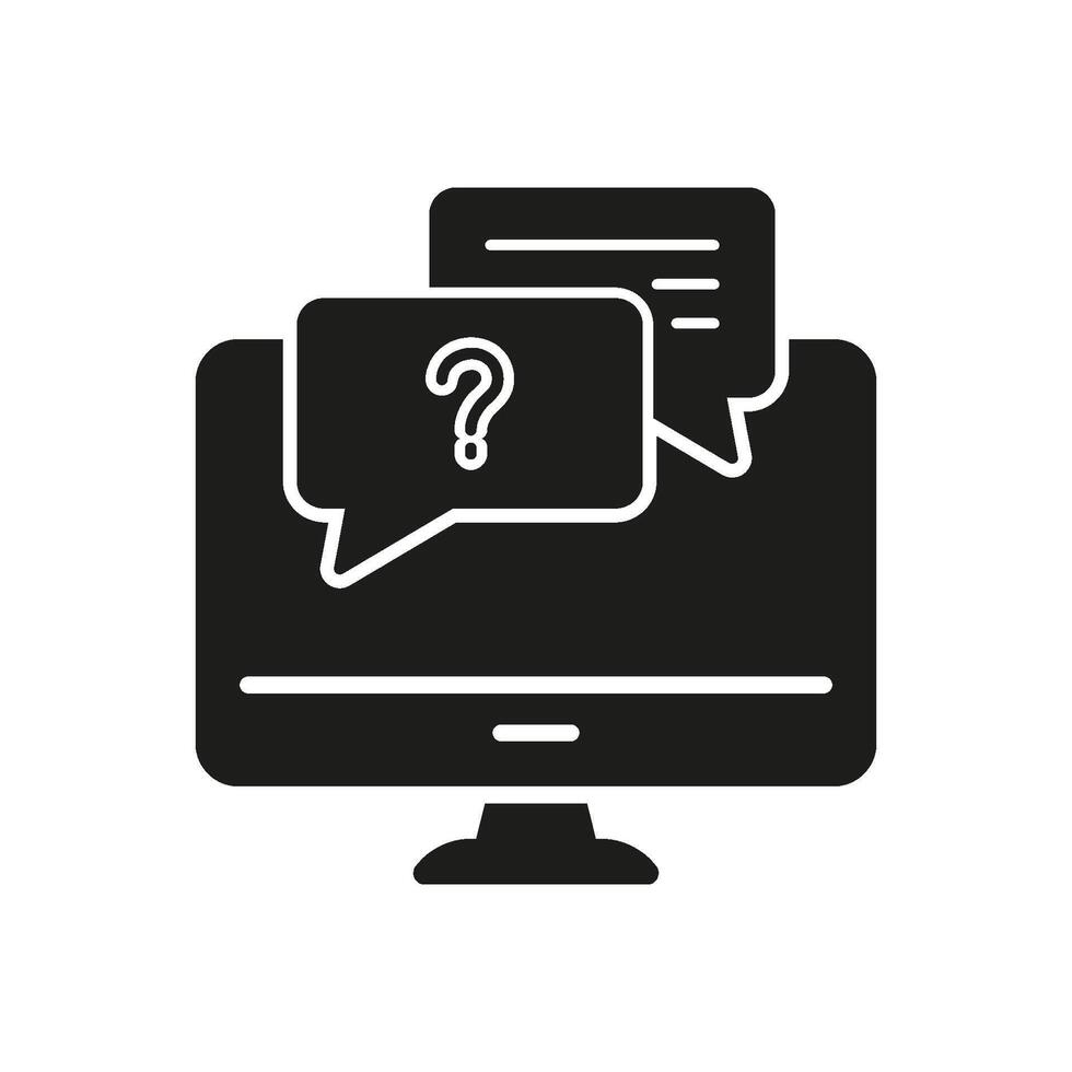Desktop Computer with Message Speech Bubbles Silhouette Icon. Online Support Glyph Symbol. Help, Communication and Assistance. Isolated Illustration Pro Vector