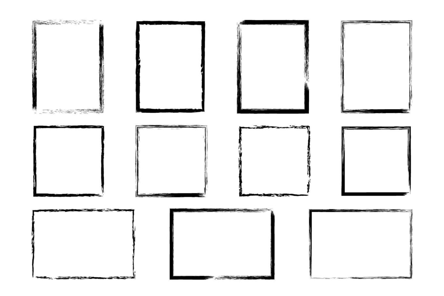 Set of rectangular and square grunge frames. illustration of textured linear shapes drawn with rough brushes Pro Vector