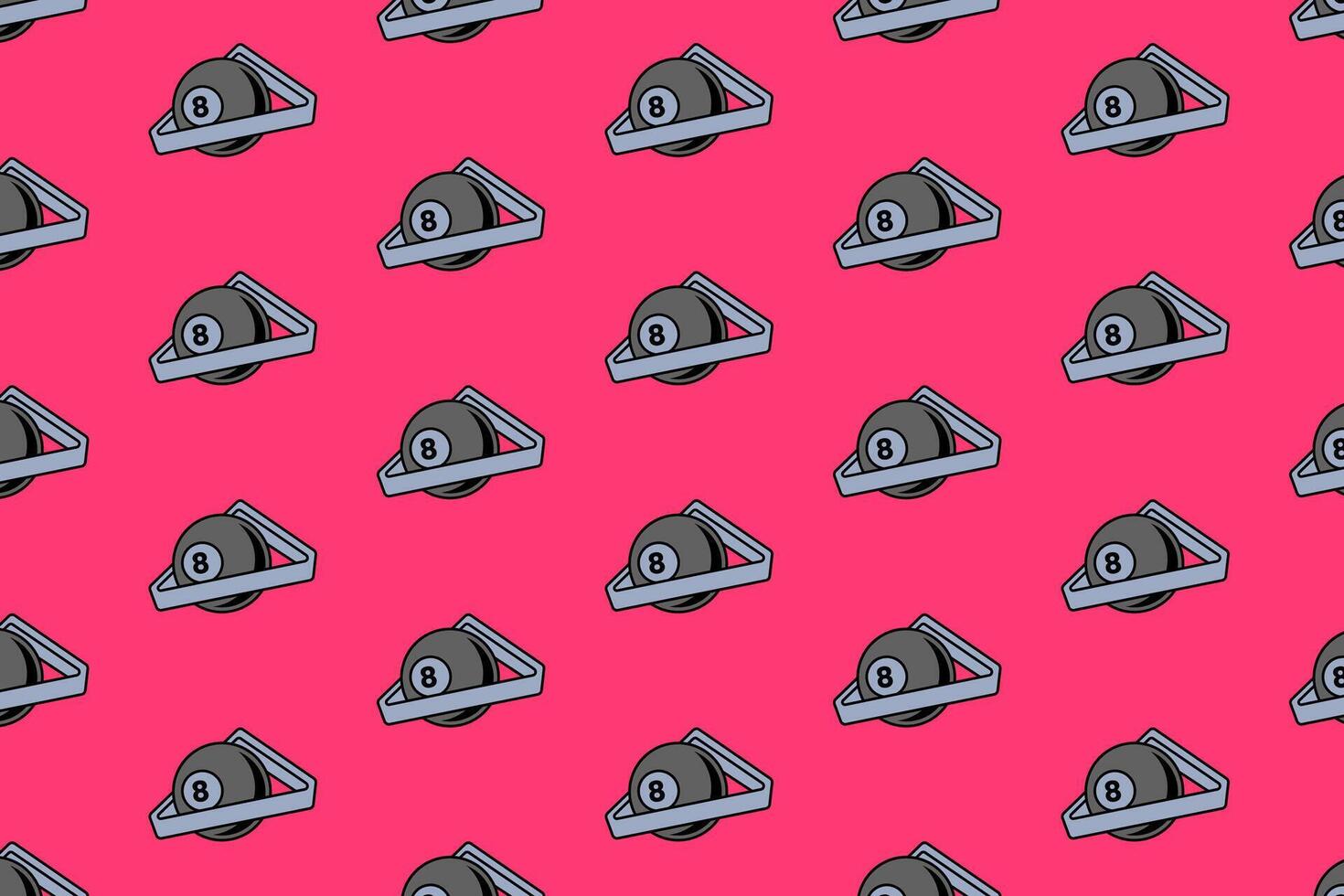 black ball and triangle rack billiard seamless pattern on red background. 8 ball and triangle rack pool snooker illustration pattern background for billiard decoration and merchandise Pro Vector