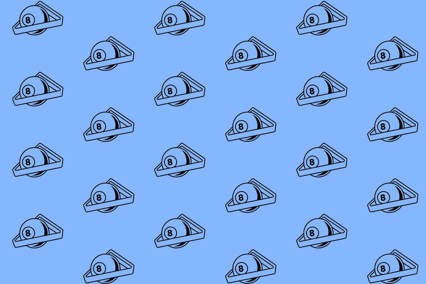 8 ball and triangle rack billiard outline seamless pattern on blue background. black ball and triangle rack pool snooker illustration pattern background for billiard decoration and merchandise Pro Vector