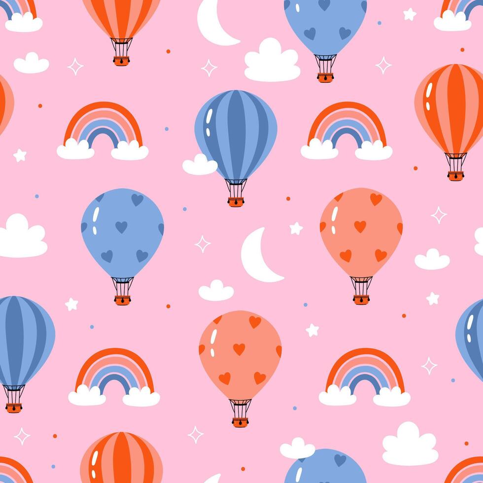 Seamless pattern with balloons, rainbows and clouds. graphics. Pro Vector