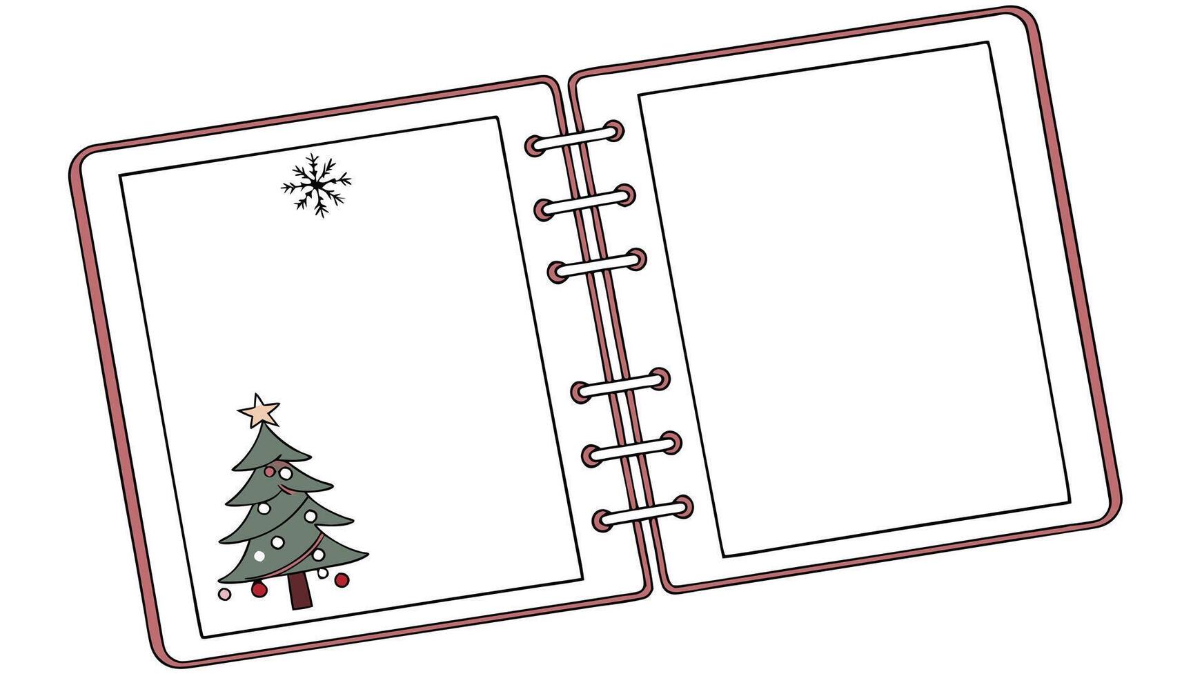 White blank flat lay empty mock up of open planner with christmas tree and decorations vector