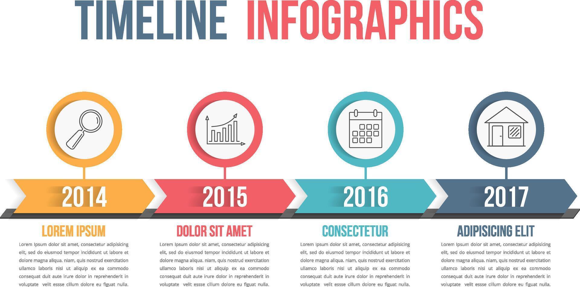 Timeline infographics design with arrows, workflow or process diagram, flowchart Pro Vector