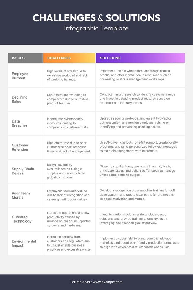 Challenge and Solution Comparison Table Business Vertical Infographic Template Deisgn Pro Vector
