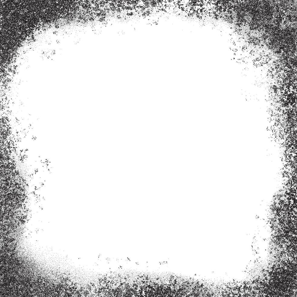 Grunge frame with grainy torn border on white background. Brushed rough textured fade. Old sandy noisy halftone square template. Abstract stipple dust paper Pro Vector