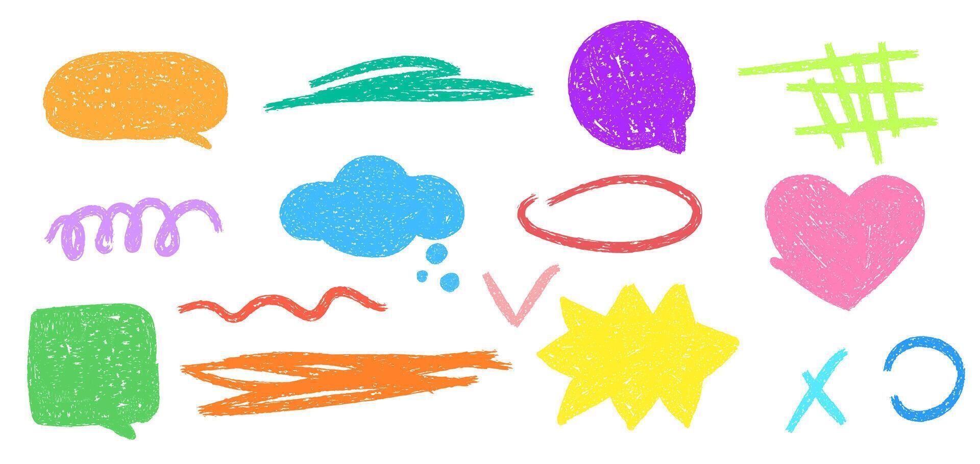 Set of speech bubble and line with crayon texture. illustration Pro Vector