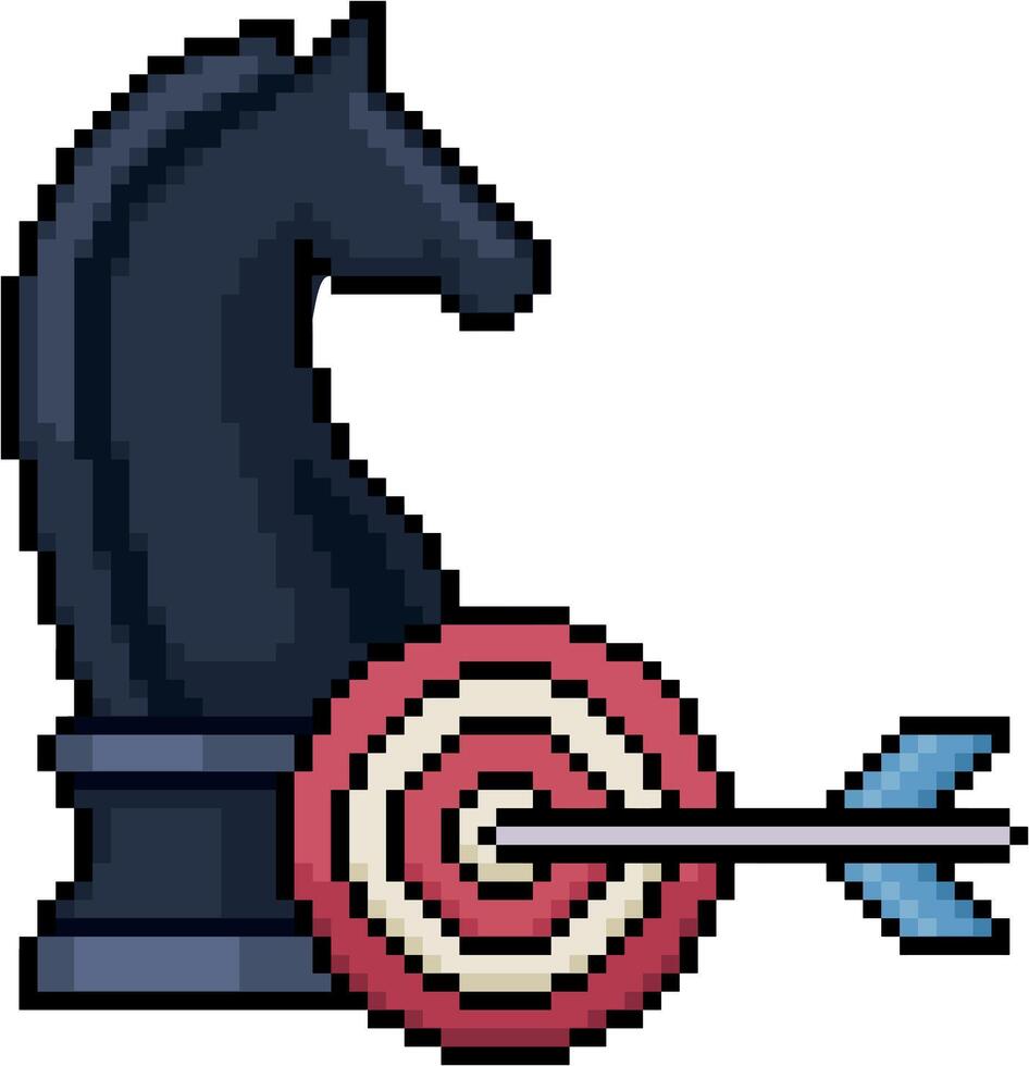 Pixel art of a chess knight with a target and arrow in 8 bit style on white background Pro Vector