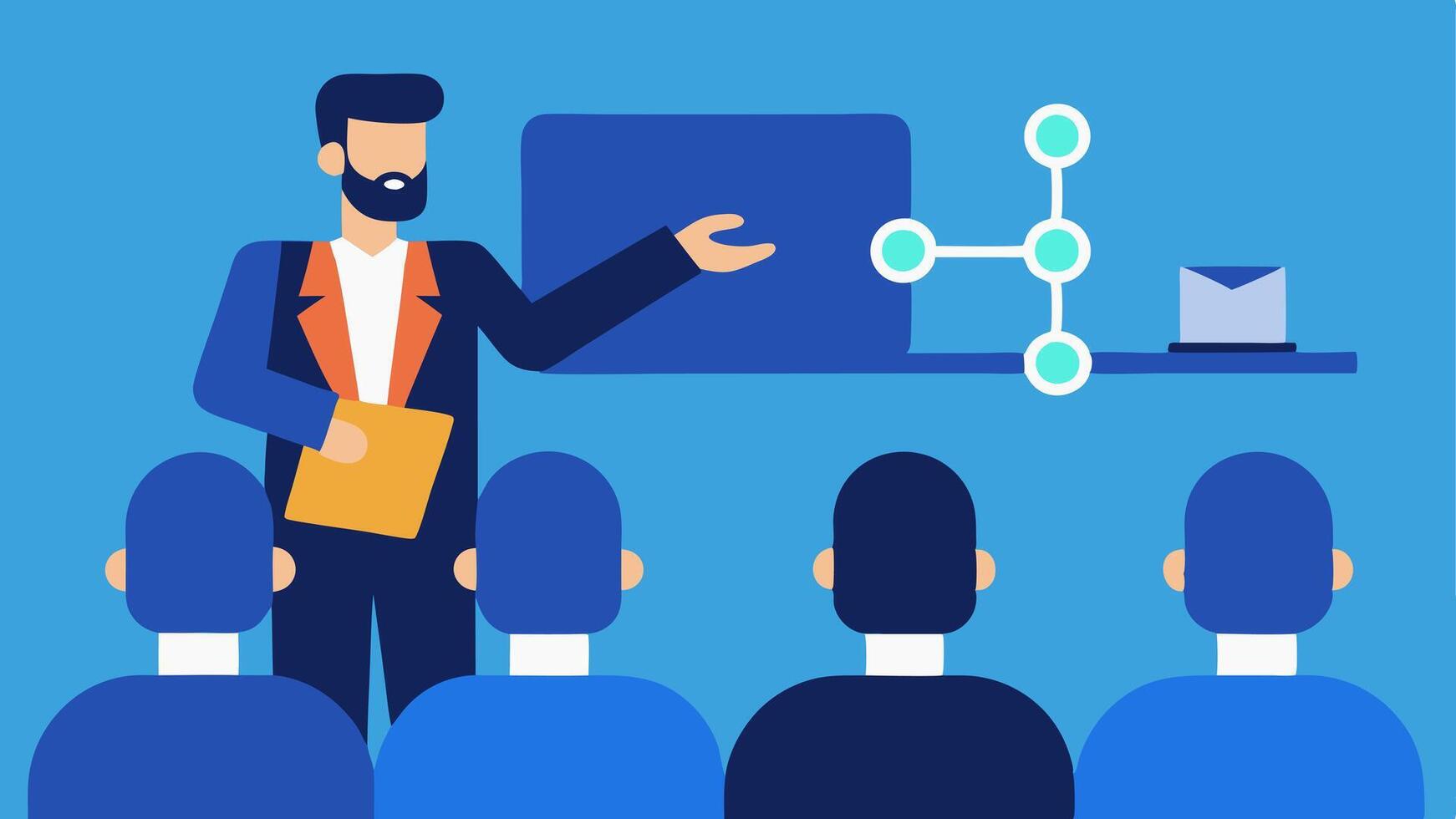 Training Programs An illustration of a supply chain manager leading a training session for staff on how to use AI tools effectively within the supply chain process.. Pro Vector