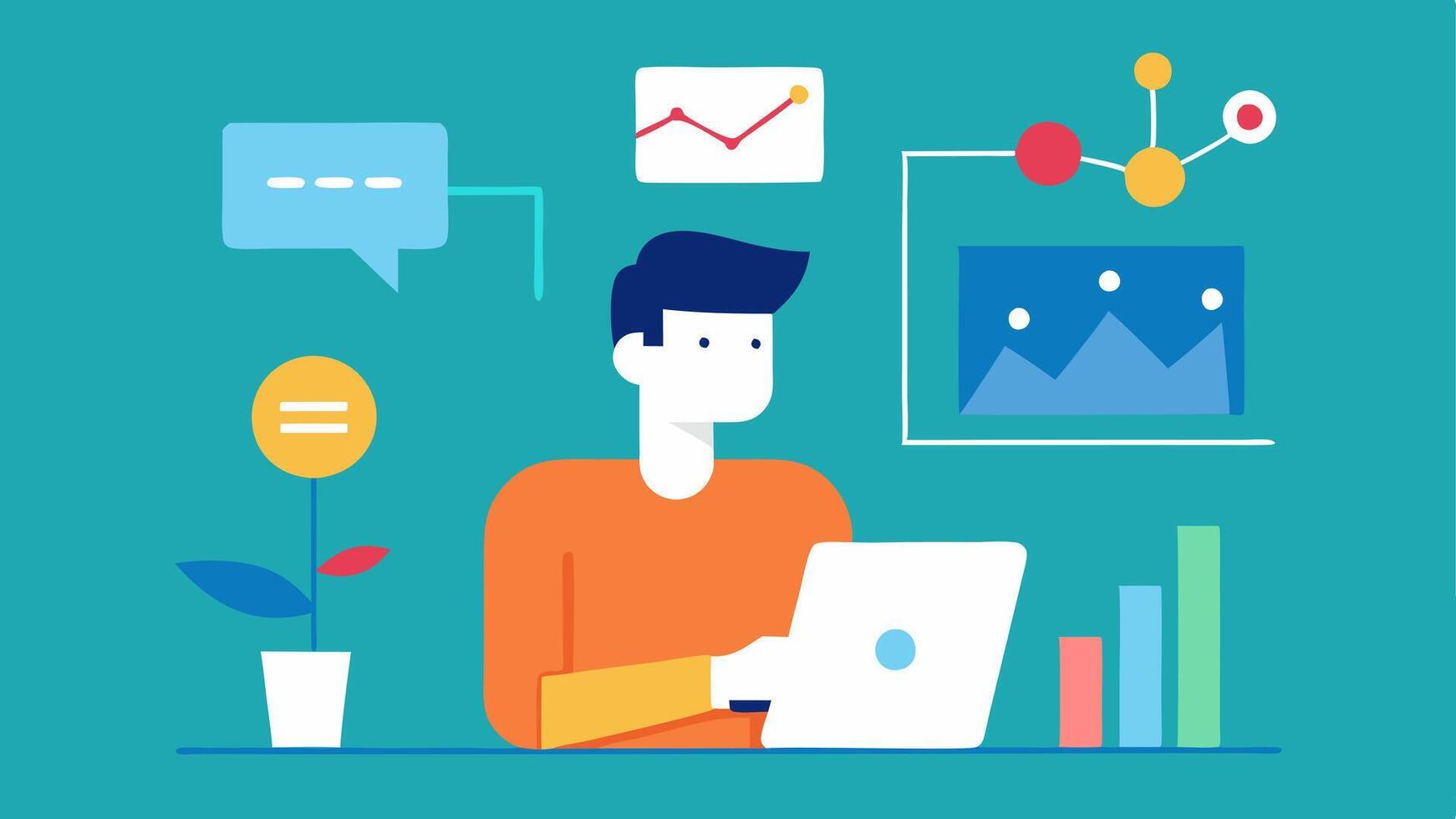 Sales Data Analysis A strategist working with a chart display highlighting key statistics about social mediadriven sales such as conversion rates and customer feedback.. Pro Vector