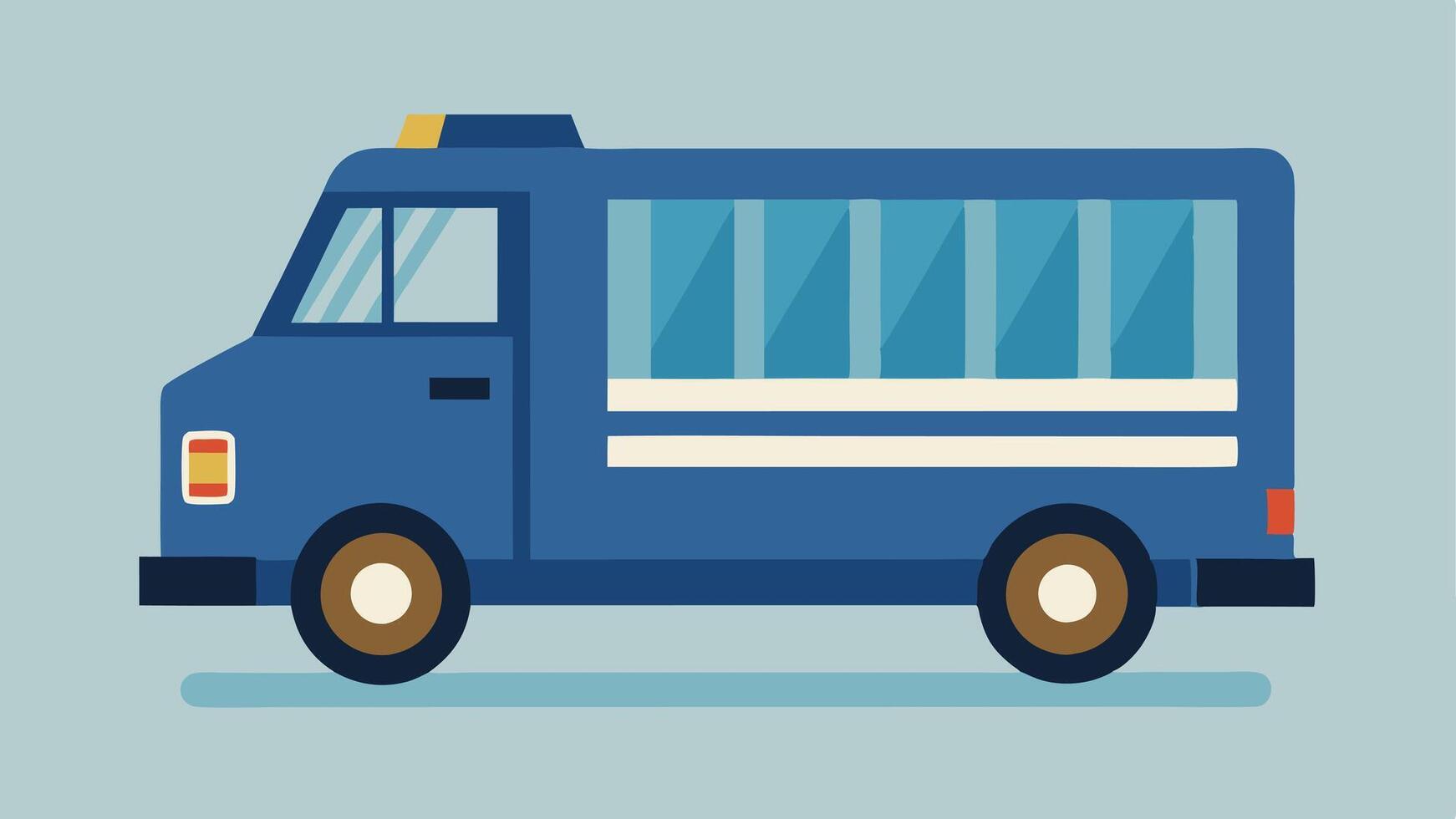 Secure Police Van A side view of a large boxy police van with barred windows and a distinctive insignia emphasizing its function in prisoner transport.. Pro Vector