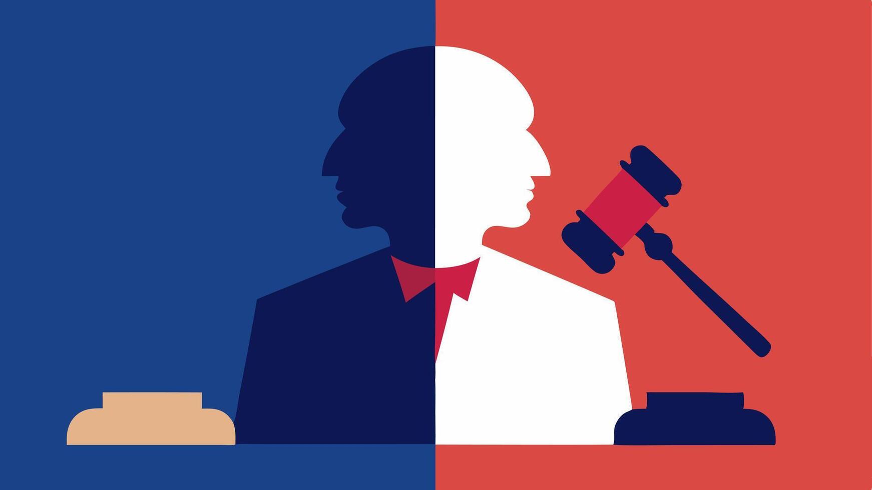 Split Scene A split illustration showing the judges serious expression on one side and the gavel hitting the sound block on the other symbolizing the impact of the ruling.. Pro Vector