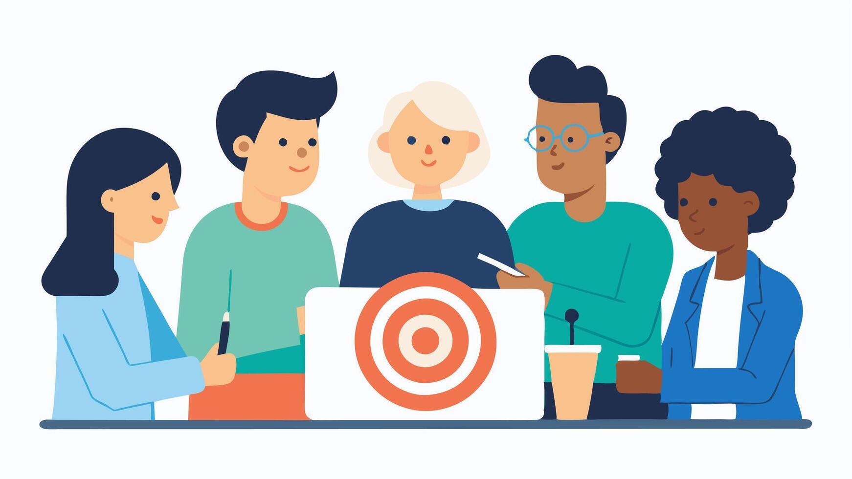 The Team Planning A group of diverse characters gathered around a table discussing tactics with one holding a tablet displaying the layout of a target location.. Pro Vector