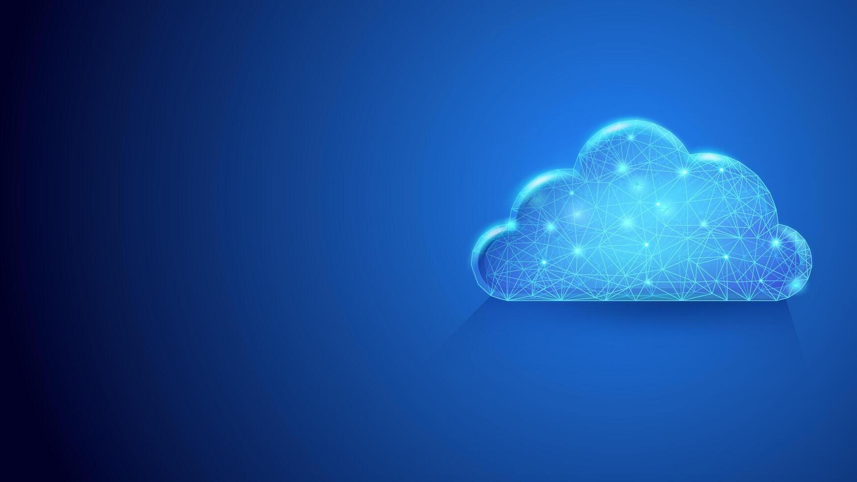 Digital Cloud computing on dark blue background, wireframe cloud symbol illustration suitable for presentation background about servers, databases, holograms and cloud storage. Pro Vector