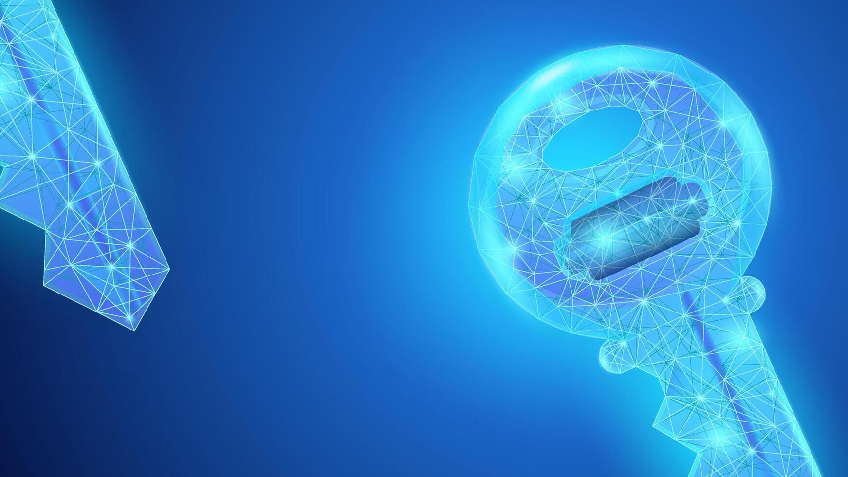 Virtual Key banner, digital blue neon key in low poly style suitable for presentation templates, posters, Safety, secret, password, cyber security, data protection, and security Pro Vector