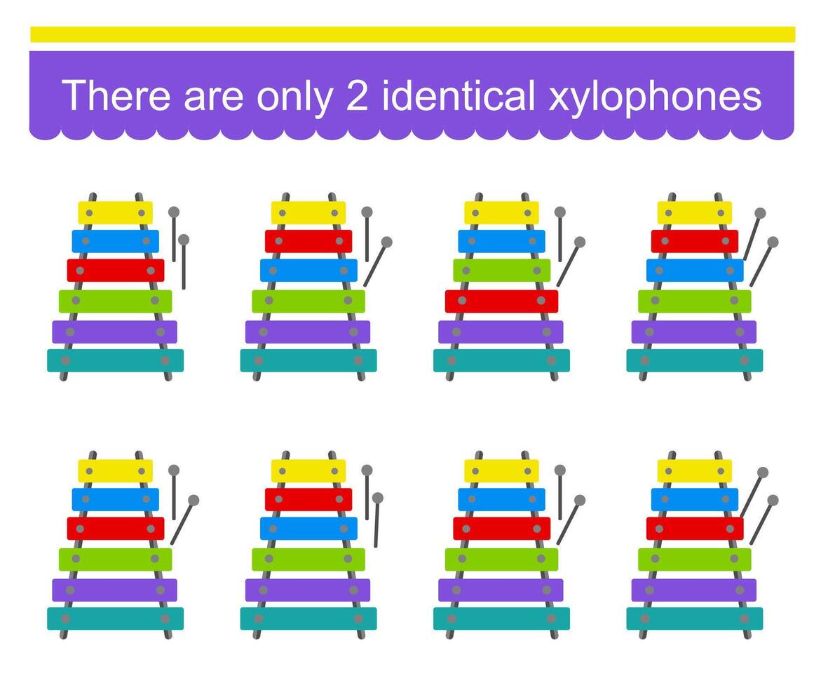 Fun puzzle game for children. Need to find two identical xylophones. Task for development of attention and logic. . Pro Vector