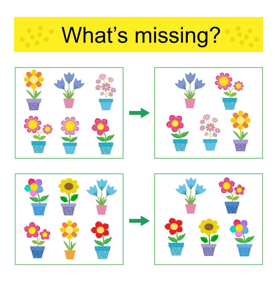 Puzzle game. Task for the development of attention and logic for children. Find the missing object. Pro Vector