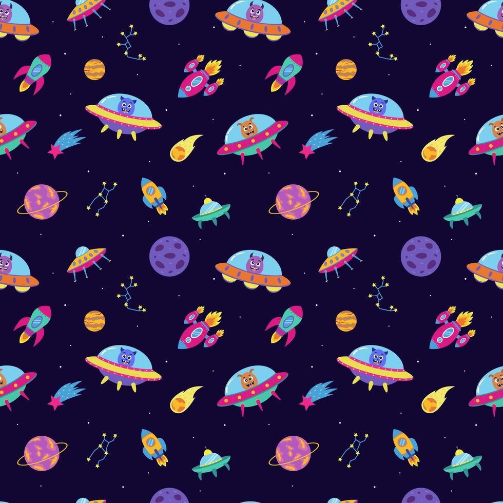 Space monsters. Seamless pattern with space elements and monsters astronauts. Pro Vector