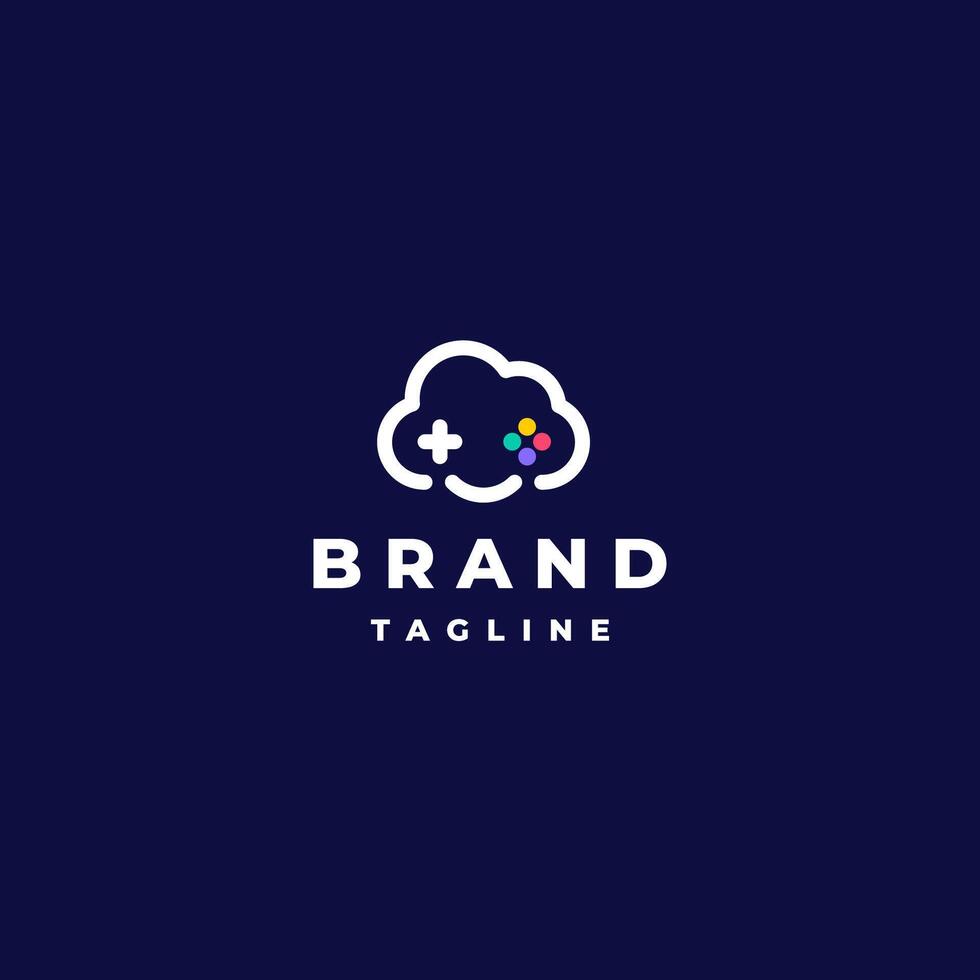 Simple Smile Cloud Game Logo Design. Cloud And Smile Symbol With Game Play Button Icon Inside. Pro Vector