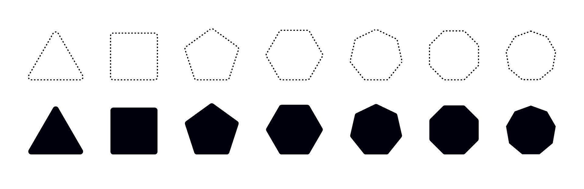 Smooth hexagon shape with geometric edges set. Regular polygon icon. Flat illustration isolated on white background. Pro Vector