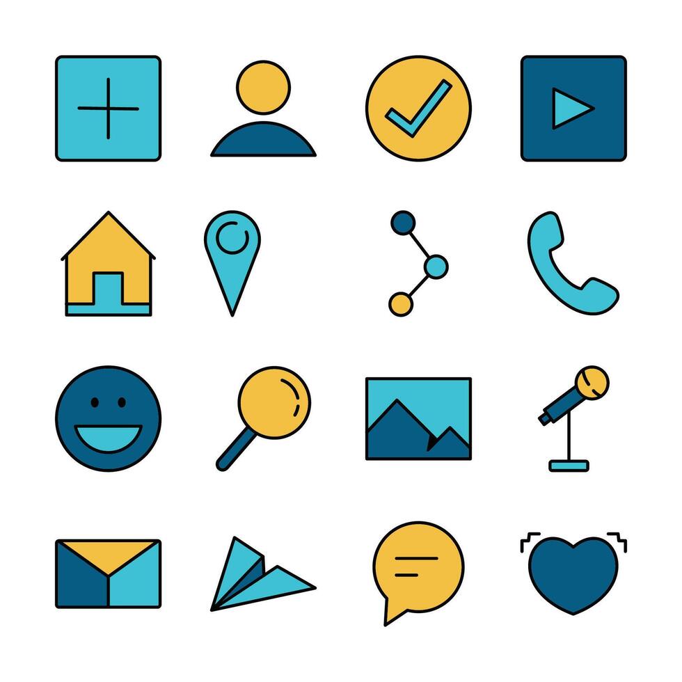 Filled Line Art Icon Set of Communication Message Information Digital Network Business Pro Vector