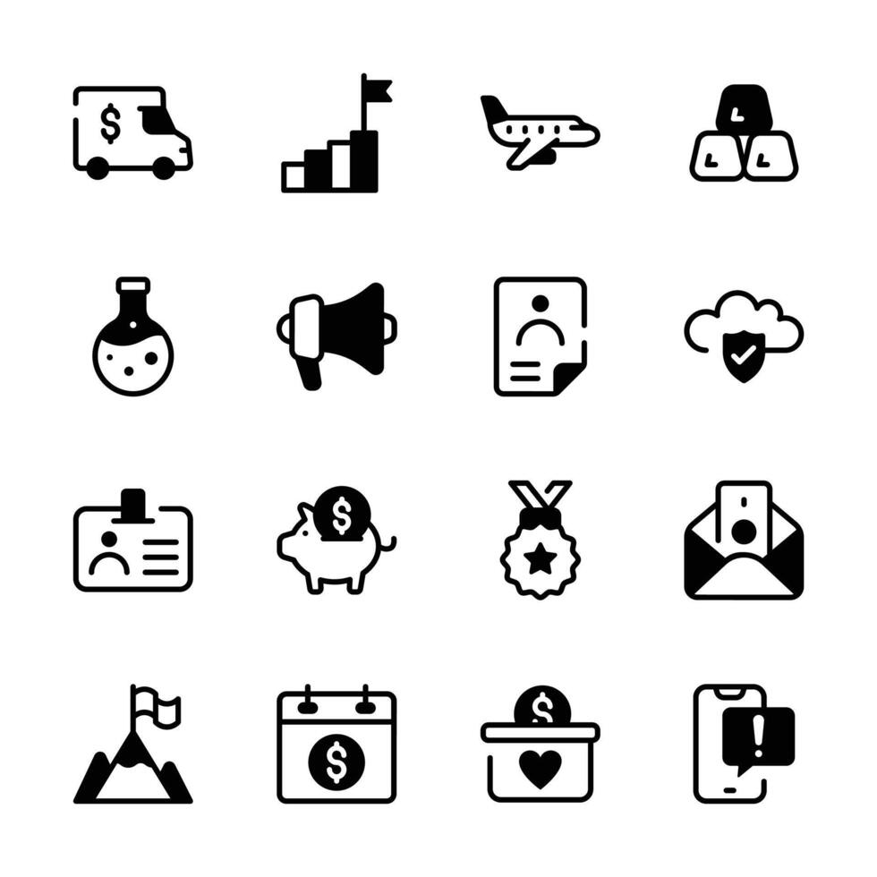 This image features a collection of 16 icons representing various business and finance concepts Pro Vector