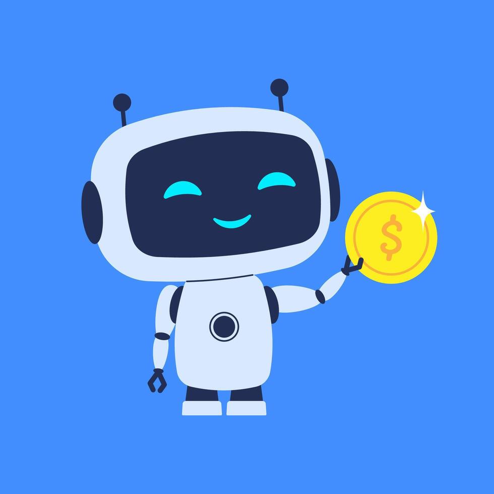 Robot holding coin or cryptocurrency. illustration for artificial intelligence theme, blockchain projects or financial technology content Pro Vector