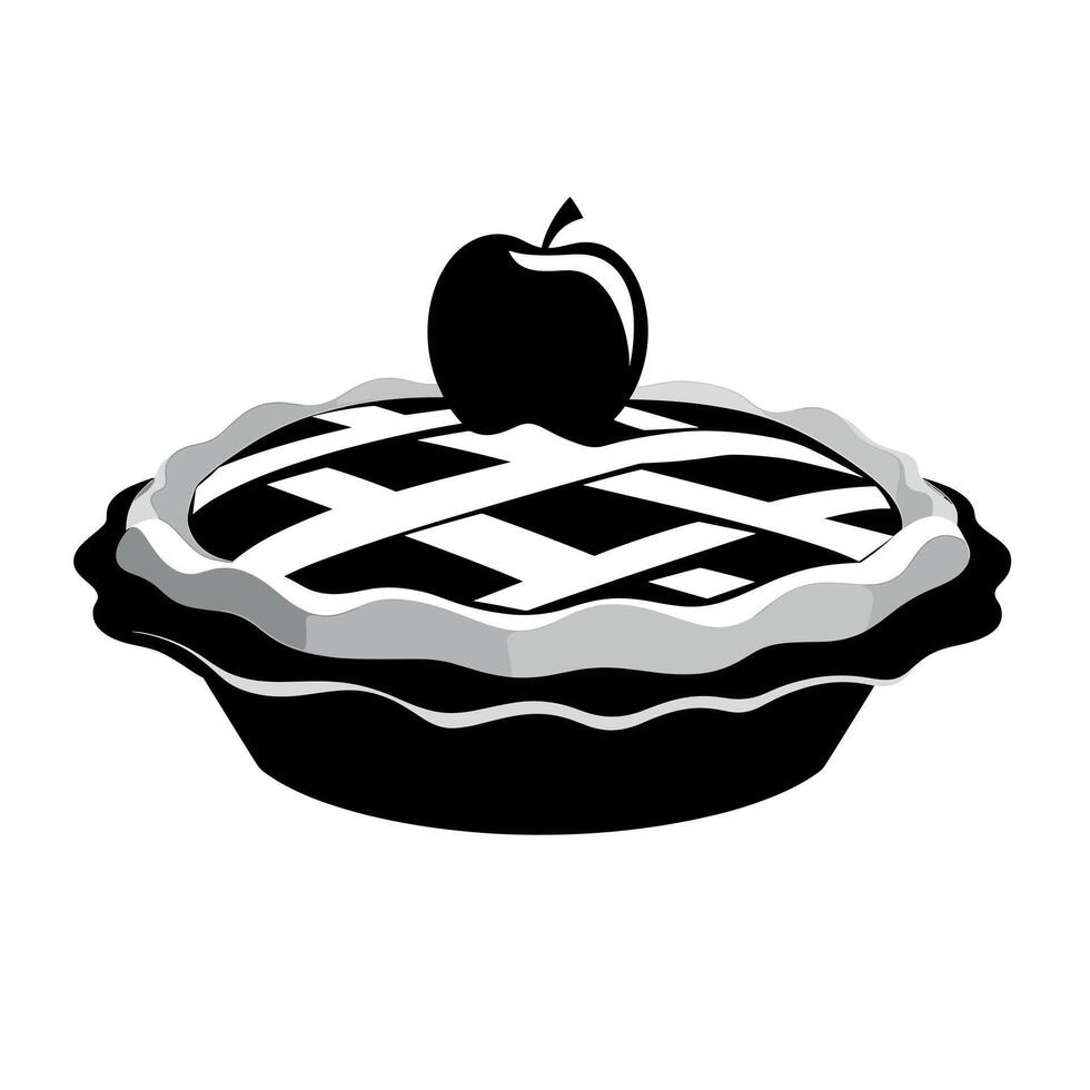 Apple pie with a lattice crust and an apple on top displayed in a minimalist style Pro Vector