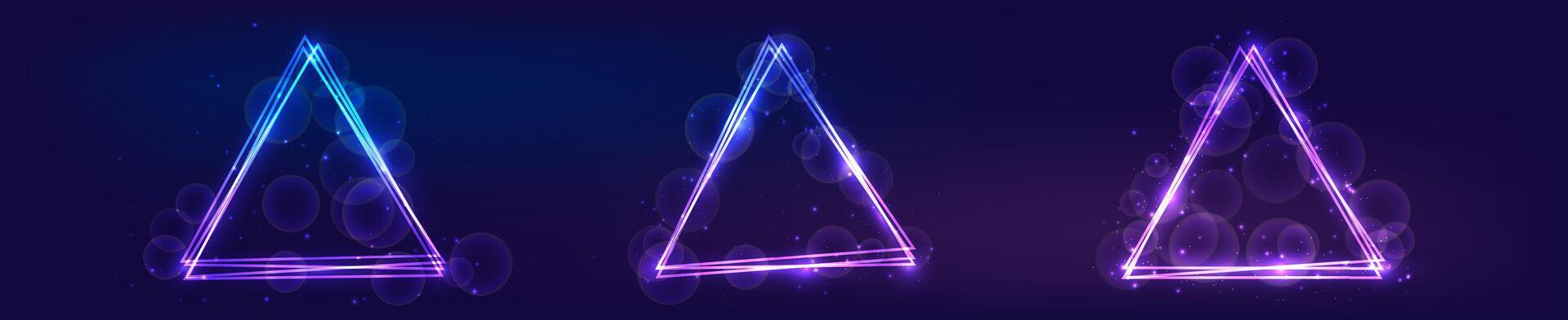 Neon triangular frame with shining effects and sparkles Pro Vector