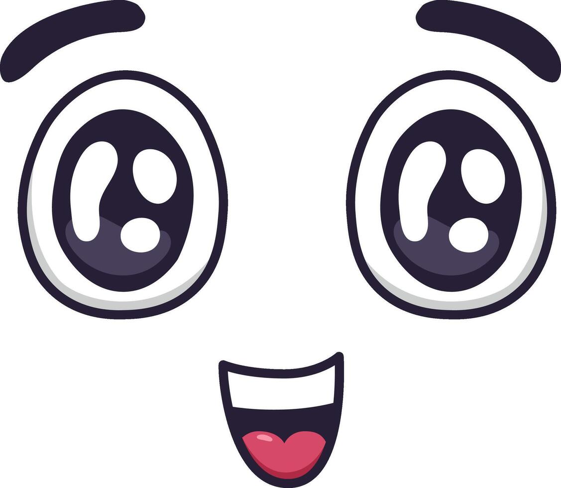 Cartoon face showing happiness through wide open eyes, raised eyebrows, and a big, open mouthed smile, conveying joy, amusement, or excitement in a playful and expressive way Pro Vector