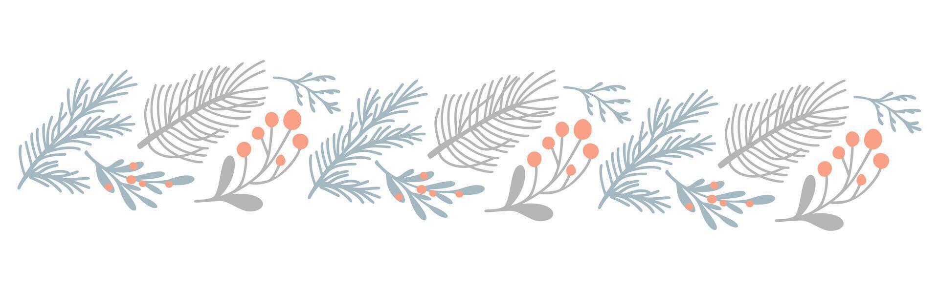 Christmas seamless border ornament with pine branches tree and berries creating a repeating festive winter pattern hand drawn for greeting card Pro Vector
