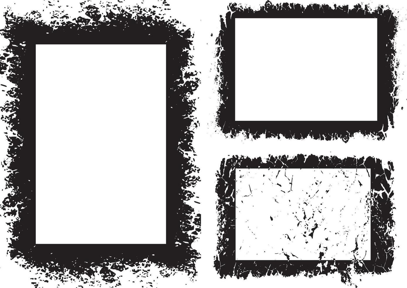 Three square frames with white paint on black background, Dynamic Collection of Edgy Grunge Frame Designs Featuring Three Rectangular Frames with Intricate, Symmetrical Black Patterns and Abstract, Pro Vector