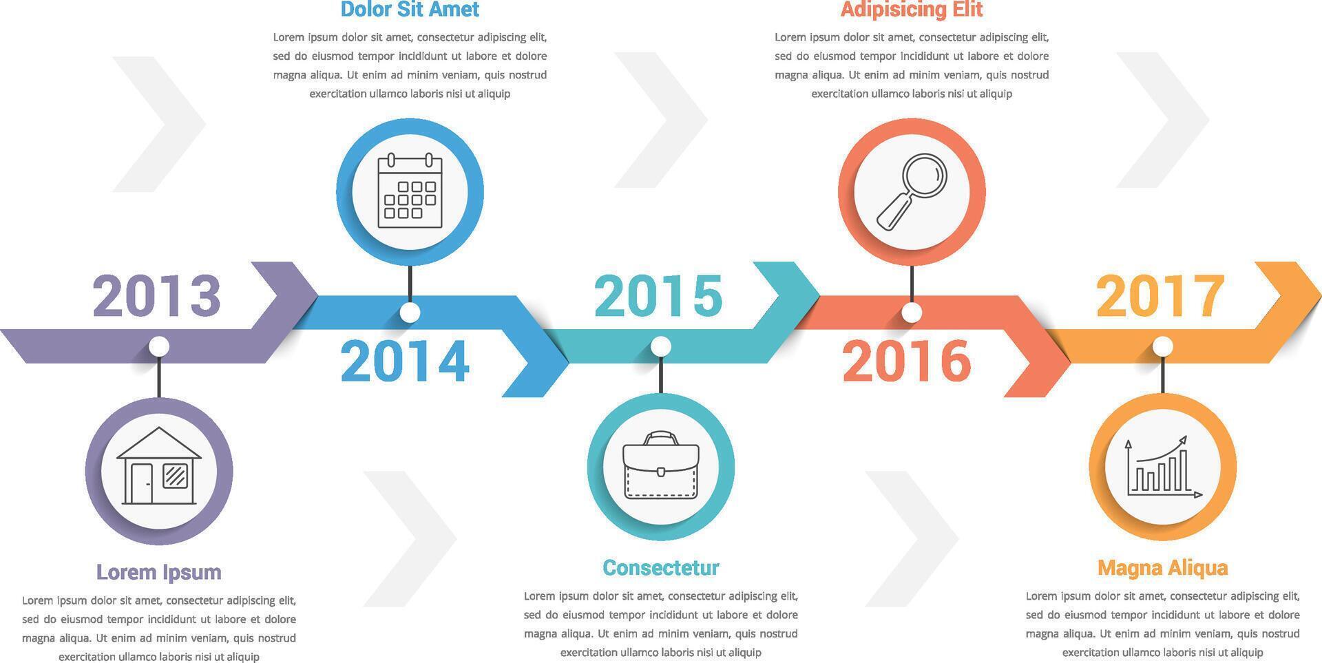 Timeline infographics template with arrows, workflow or process diagram, can be used as steps or options Pro Vector