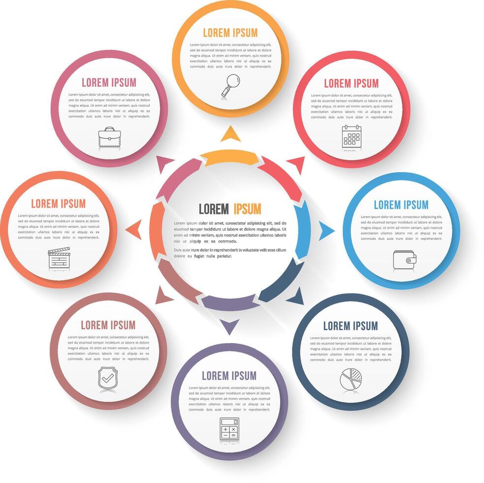 Circle infographic template with eight elements, steps or options, workflow or process diagram, data vizualization Pro Vector