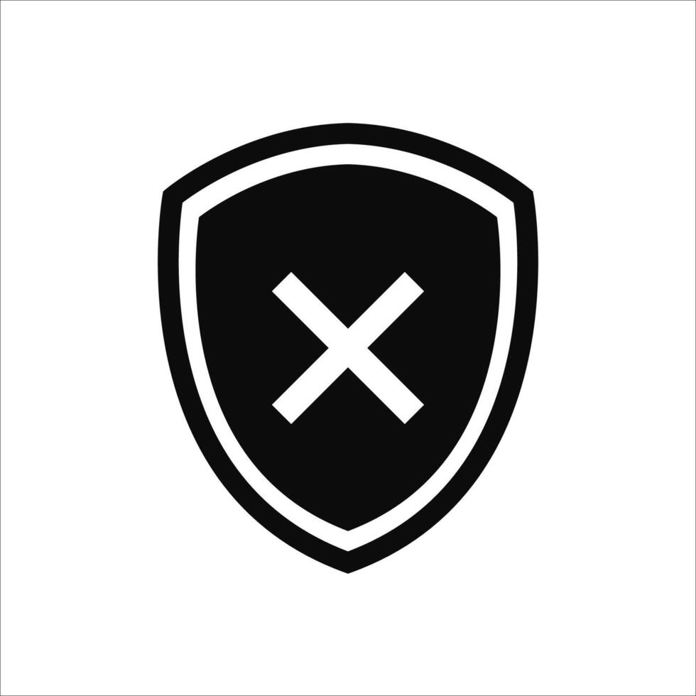 Shield check mark false icon or security shield danger protection icon with cross symbol. Pro Vector