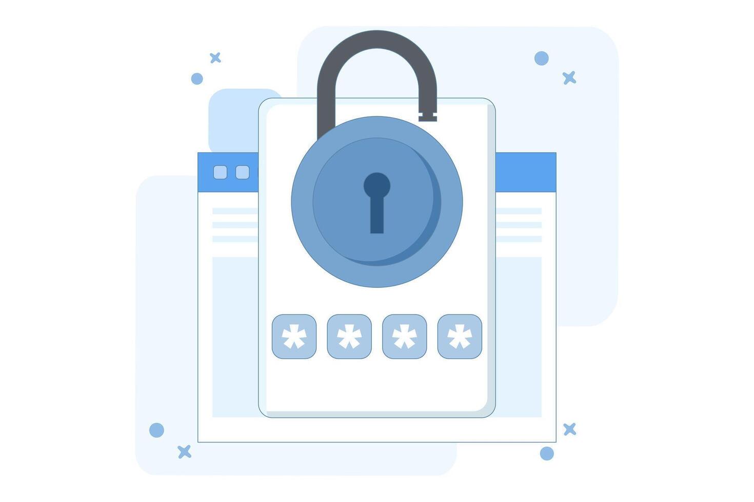 Website password security access notification concept on laptop computer, web internet notification verification code on device screen for authentication, flat illustration on background. Pro Vector