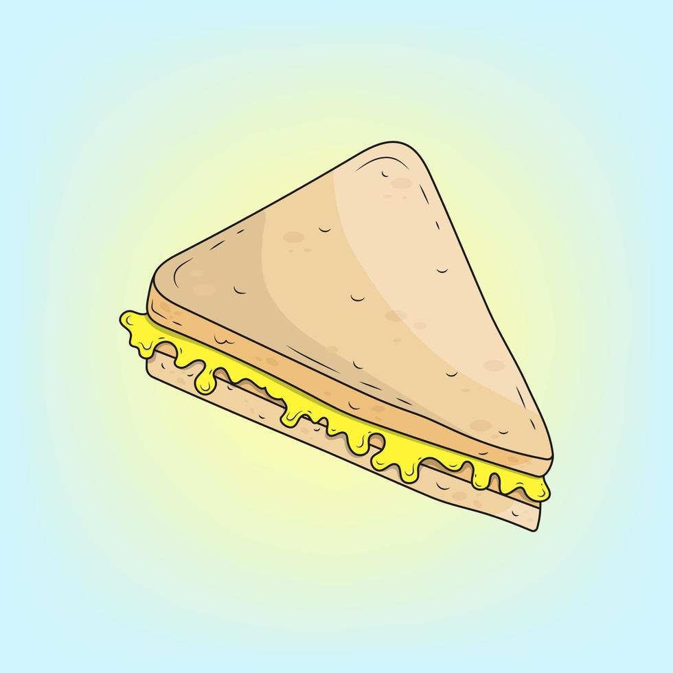 Vector hand drawn create design, Triangle bread with melting cheese. Pro Vector