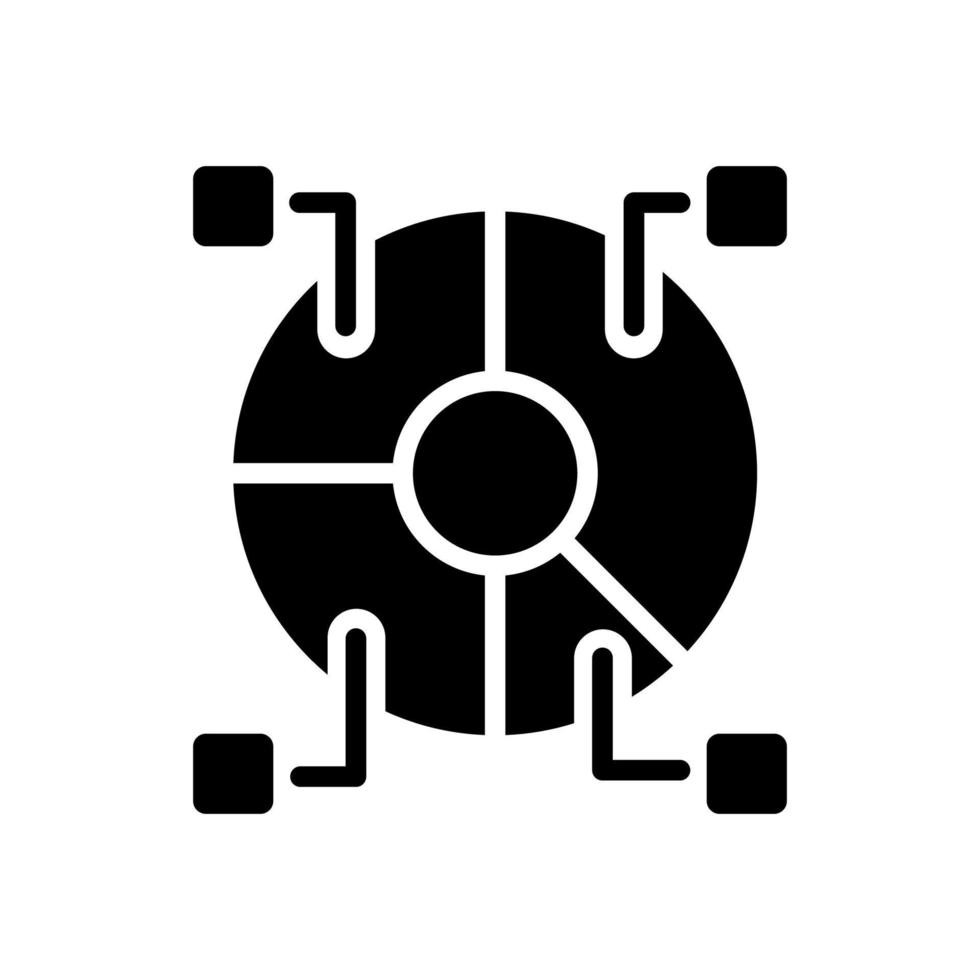 Data set analytics black glyph icon. Information structure researching. Data mining and statistics. Collection and interpretation. Silhouette symbol on white space. Vector isolated illustration Pro Vector