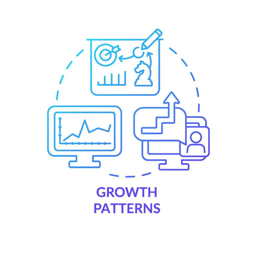 Growth patterns blue gradient concept icon. Performance monitoring abstract idea thin line illustration. Increasing revenue. Isolated outline drawing. Roboto-Medium, Myriad Pro-Bold fonts used Pro Vector and Pro SVG