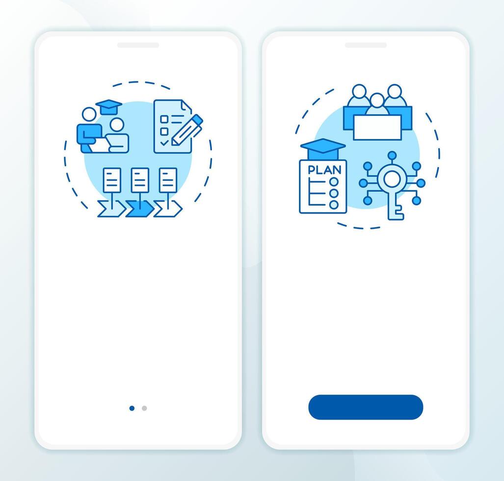 IEP vs 504 plan blue onboarding mobile app screen. Education walkthrough 2 steps editable graphic instructions with linear concepts. UI, UX, GUI template Pro Vector
