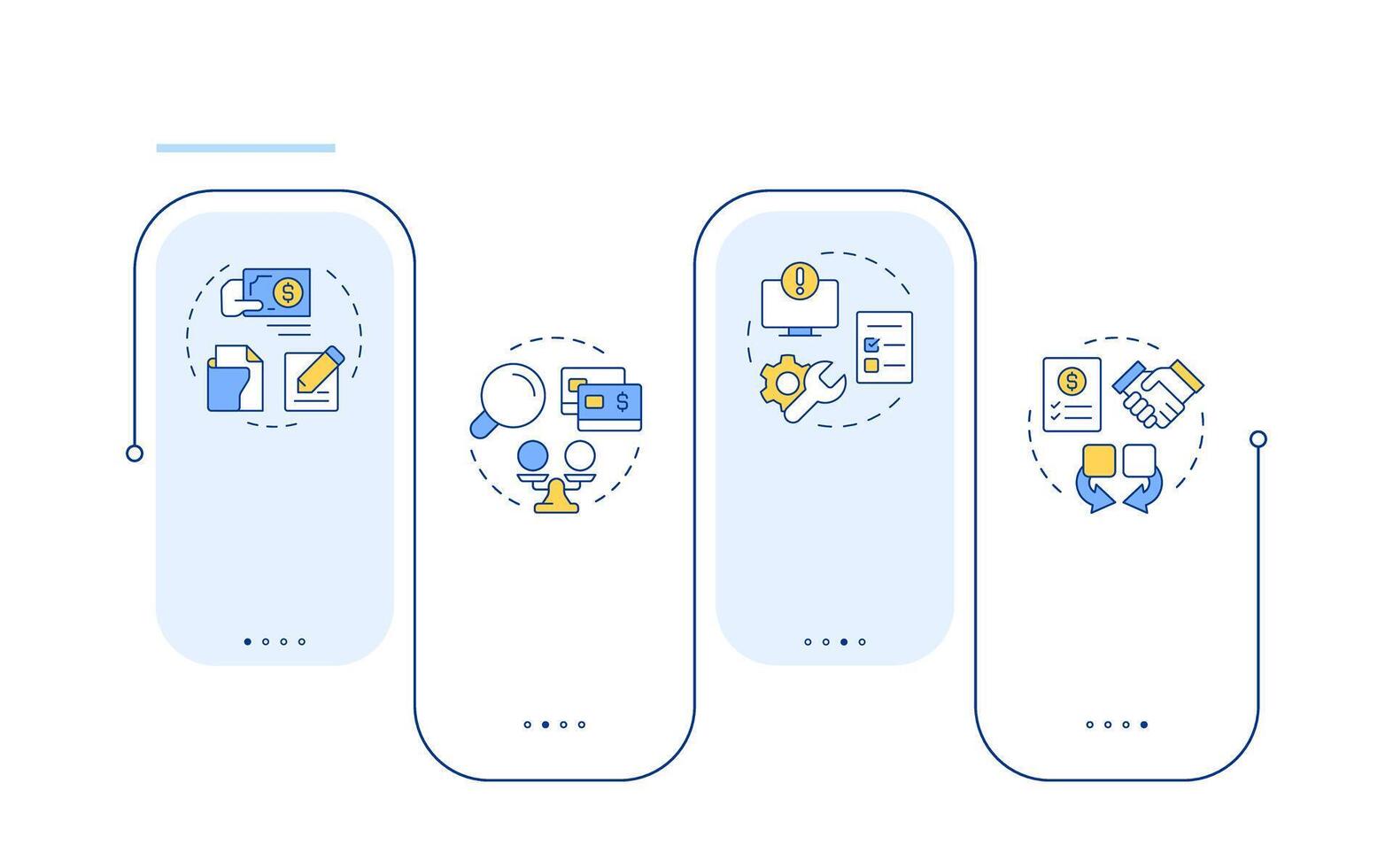 Financial close solutions management rectangle infographic . Accounting system. Data visualization with 4 steps. Editable rectangular options chart Pro Vector