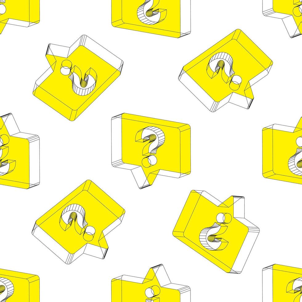 Seamless pattern with question mark on isometric yellow speech bubble on isolated background. Monochrome hipster background. Chatting messaging communication concept. Pro Vector