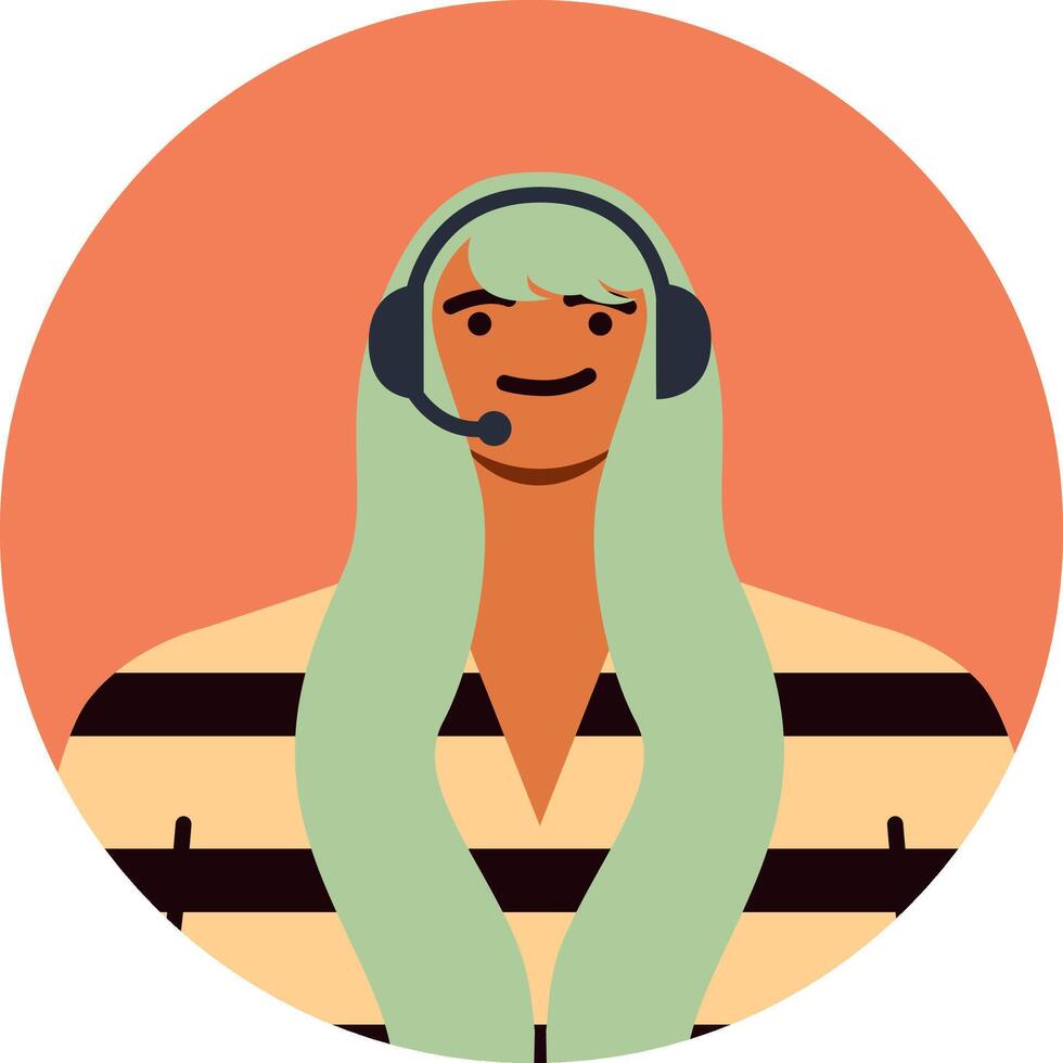 Customer service representative with headset smiling while assisting clients, providing support and answering questions in a call center environment, creating a positive customer experience Pro Vector