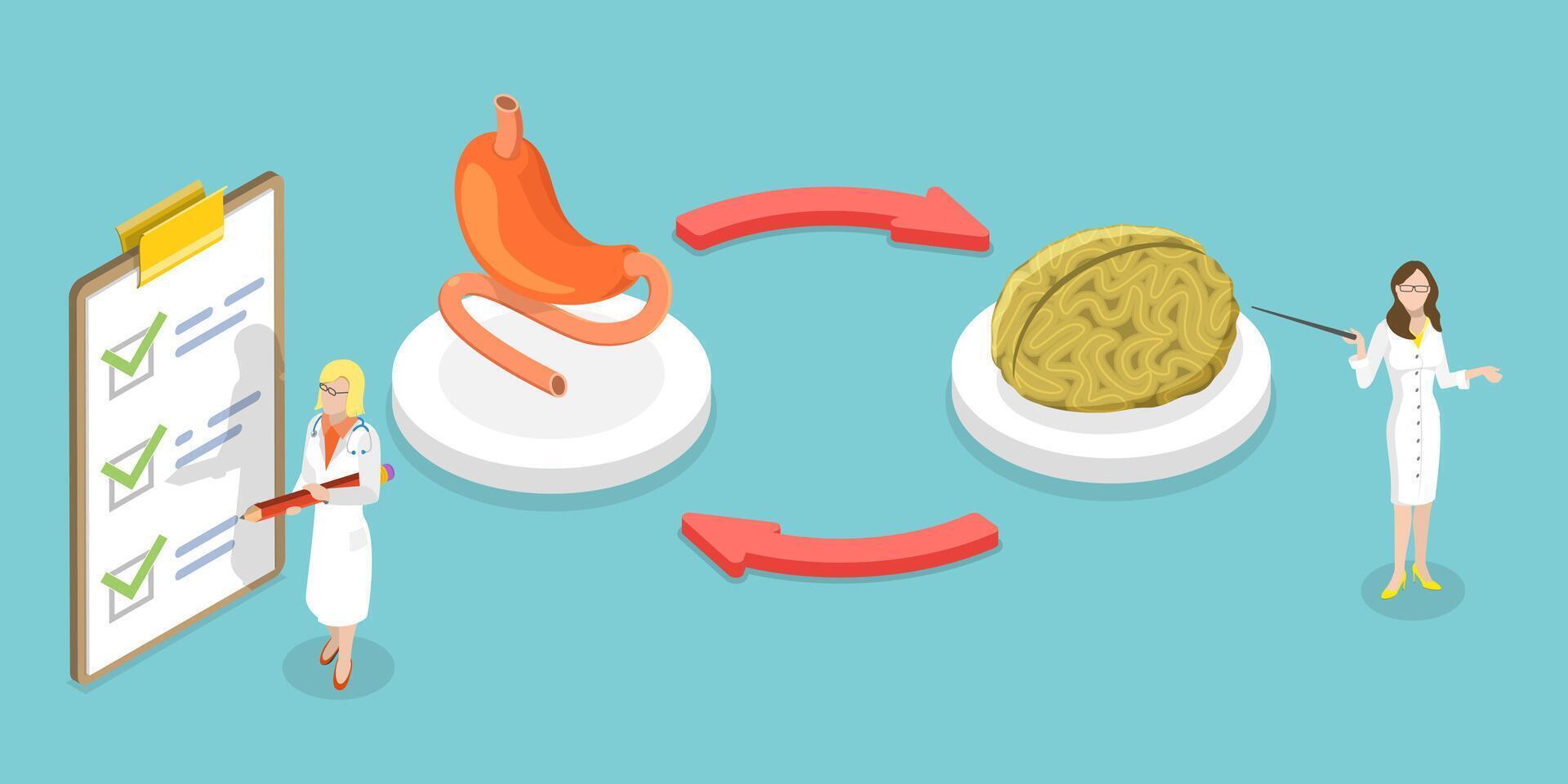 3D Isometric Flat Conceptual Illustration of Gut Brain Connection Pro Vector