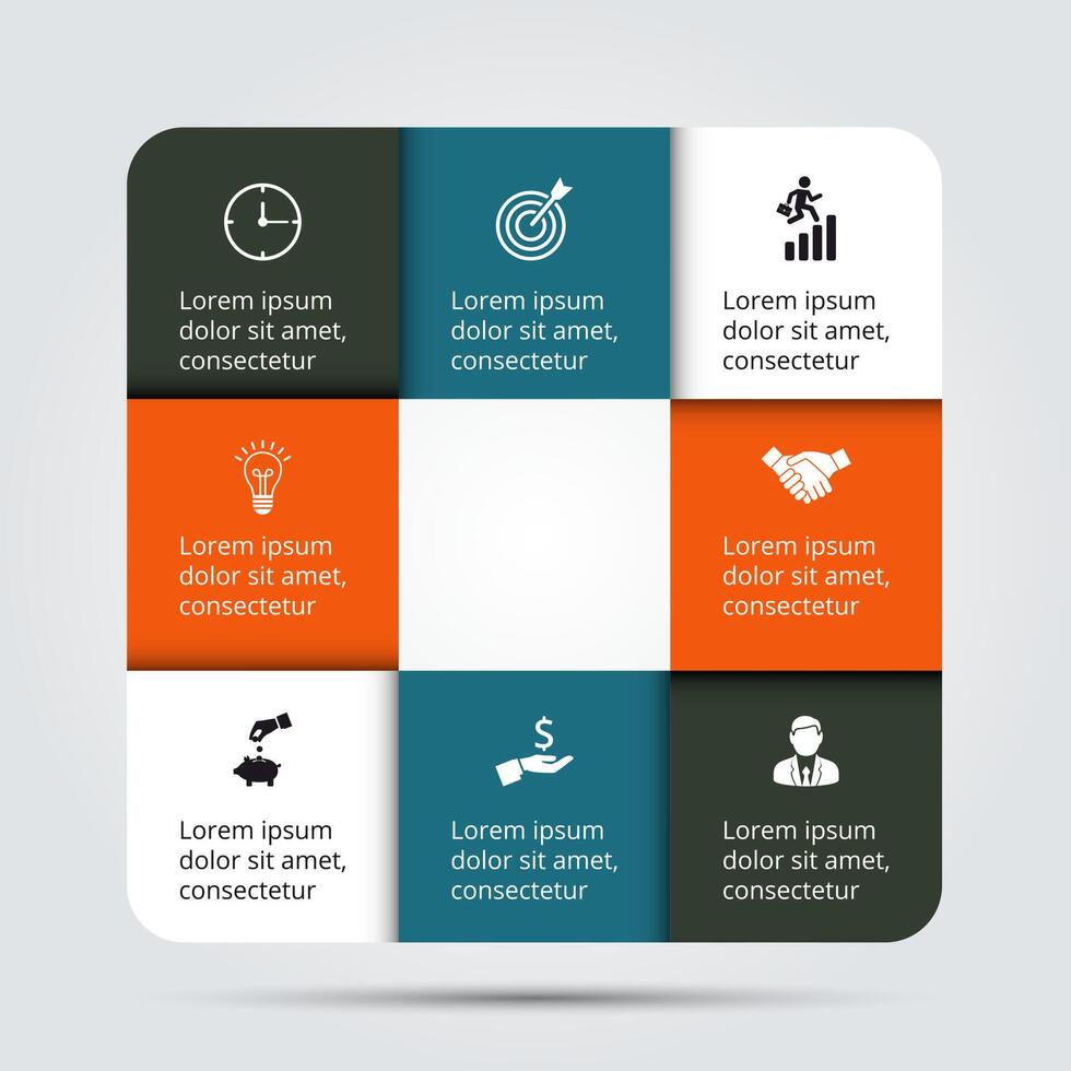 Infographic design template. Business concept with 8 options, parts, steps or processes. Can be used for workflow layout, diagram, number options, web design. Data visualization. Pro Vector