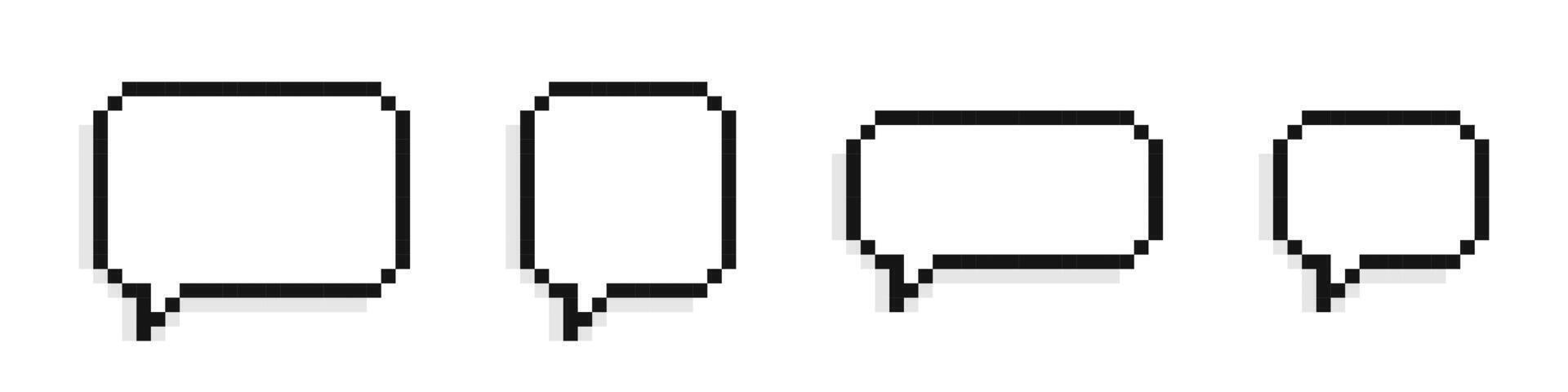 Pixel speech bubbles. Chat speech or dialogue. Set of empty pixelated speech bubbles. Pro Vector